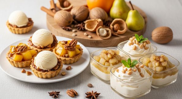 - Pomme ou poire fraichement tranchée avec quelques noix
