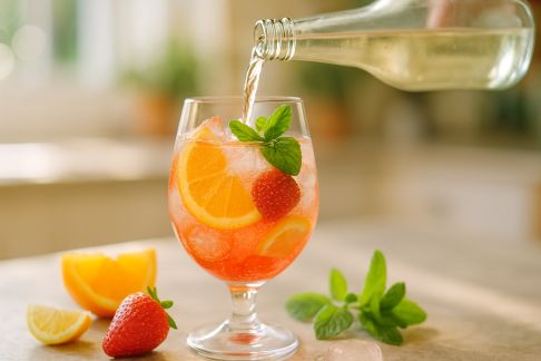 - Verser dans un grand verre bien froid, garnir aussitôt.