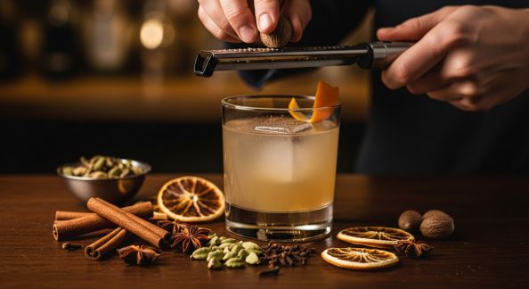 - Zester / flamber : Récupérez le zeste d’un agrume, exprimez-le au-dessus du cocktail pour aromatiser, ou (pour les experts) faites flamber à la surface pour révéler les huiles essentielles.